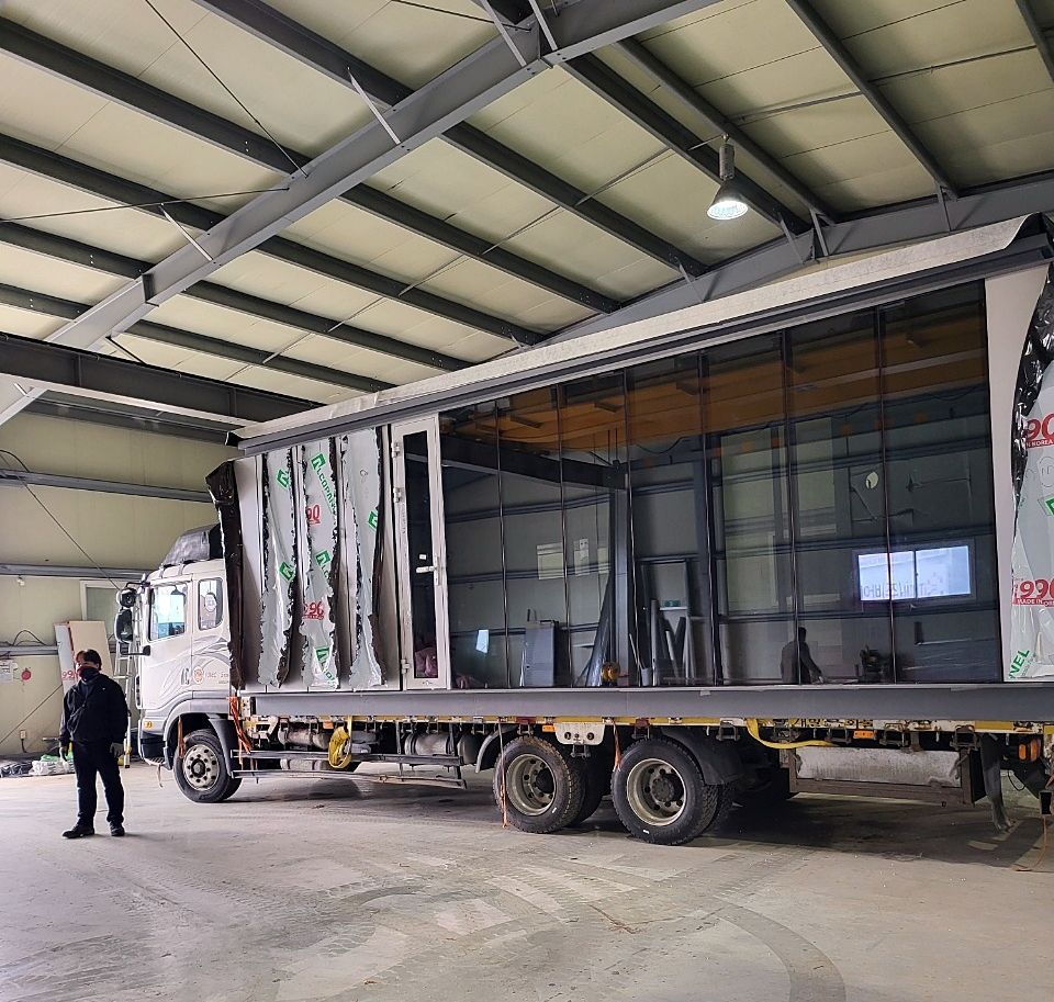 공장에서 설치장소까지 배송되는 이동식주택 "랜디요트"입니다.